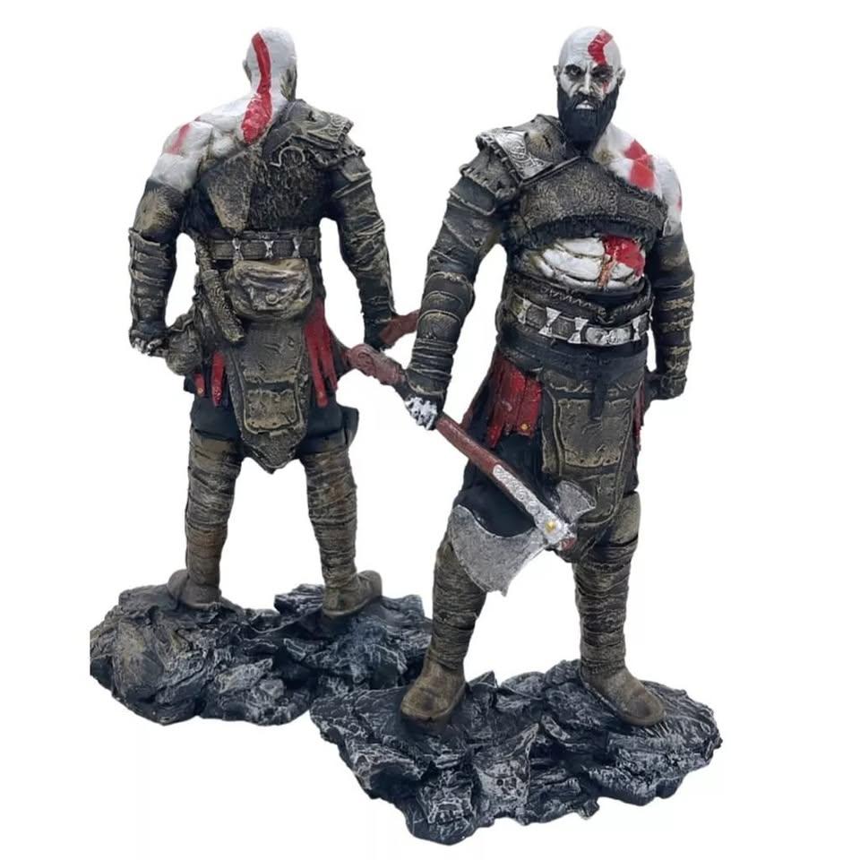 A miniatura de Kratos em resina, com 24 cm de altura, é uma representação impressionante e detalhada do famoso personagem de \"God of War\". Feita com resina de alta qualidade, a figura captura a força de Kratos, com sua armadura e seu Machado Leviatã, sendo uma peça de destaque para colecionadores e fãs da série.