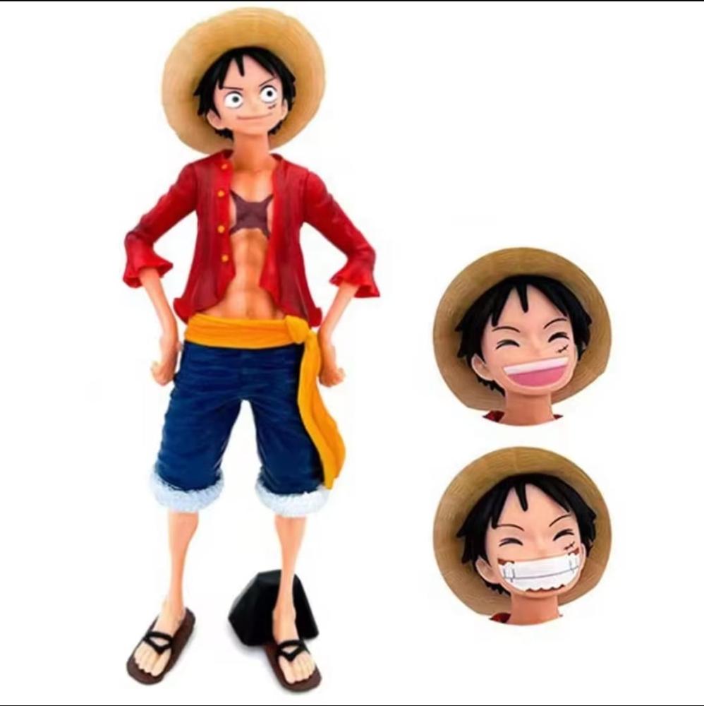 Boneco Luffy Troca Rosto Chapéu de palha One Piece Miniatura 28cm